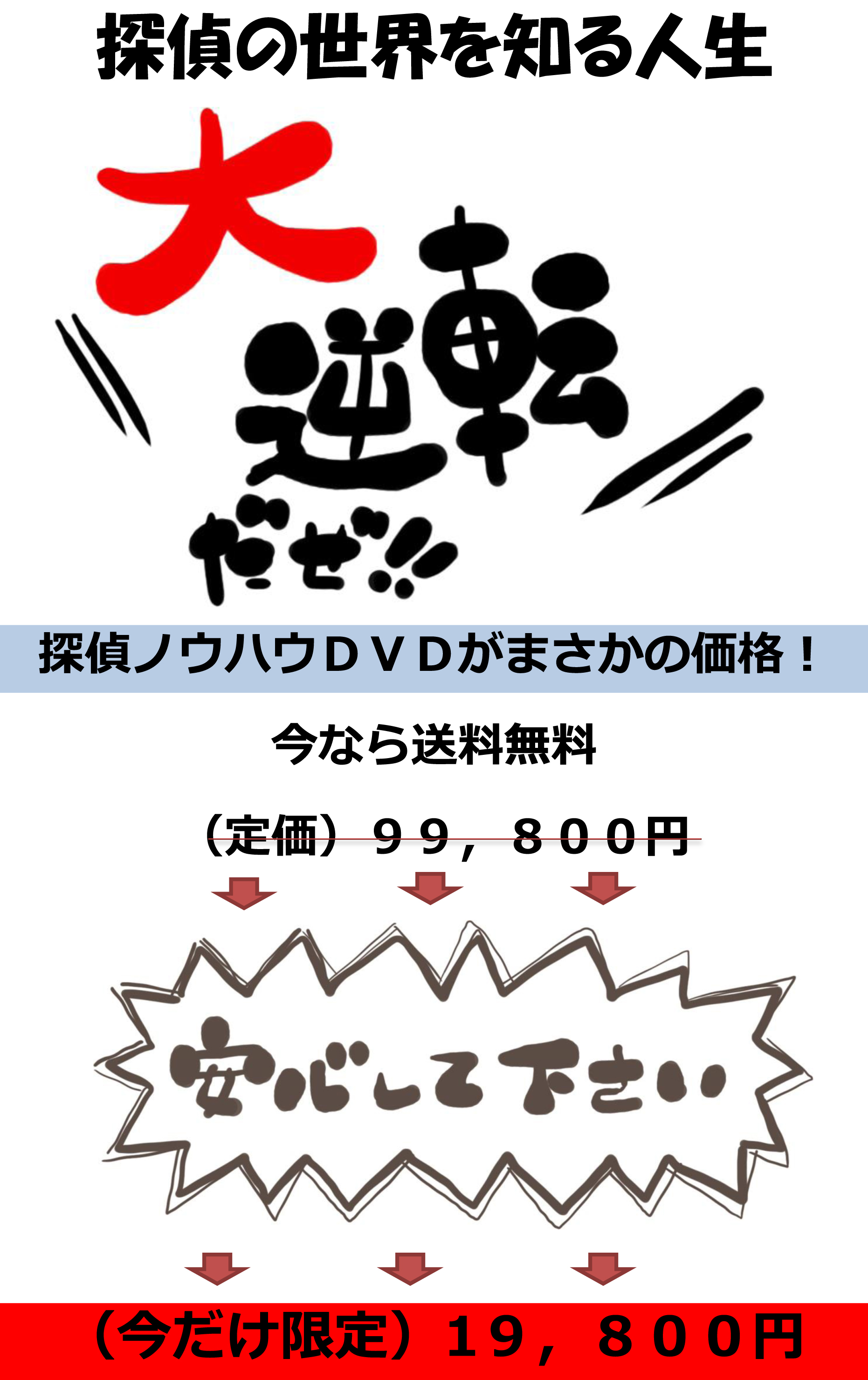 販売元の岡山県の総合探偵ゼストインポッシブルが監修し 20年の探偵ノウハウを購入していただいたお客様だけに格安で提供いたしております。